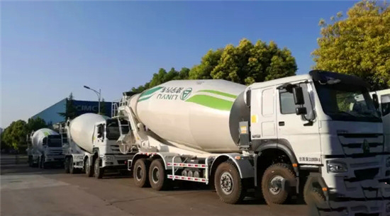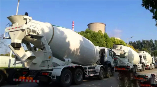 廠門口又停了一批靚麗的攪拌車。