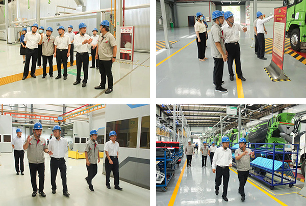 在攪拌車生產(chǎn)車間內(nèi),公司領(lǐng)導(dǎo)向趙主席一行介紹了車間產(chǎn)線的改造情況。寬敞干凈的車間環(huán)境和先進的生產(chǎn)設(shè)備,讓到訪的領(lǐng)導(dǎo)們頻頻點贊。