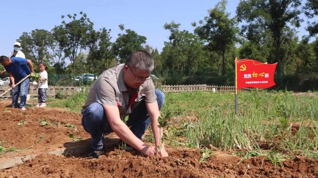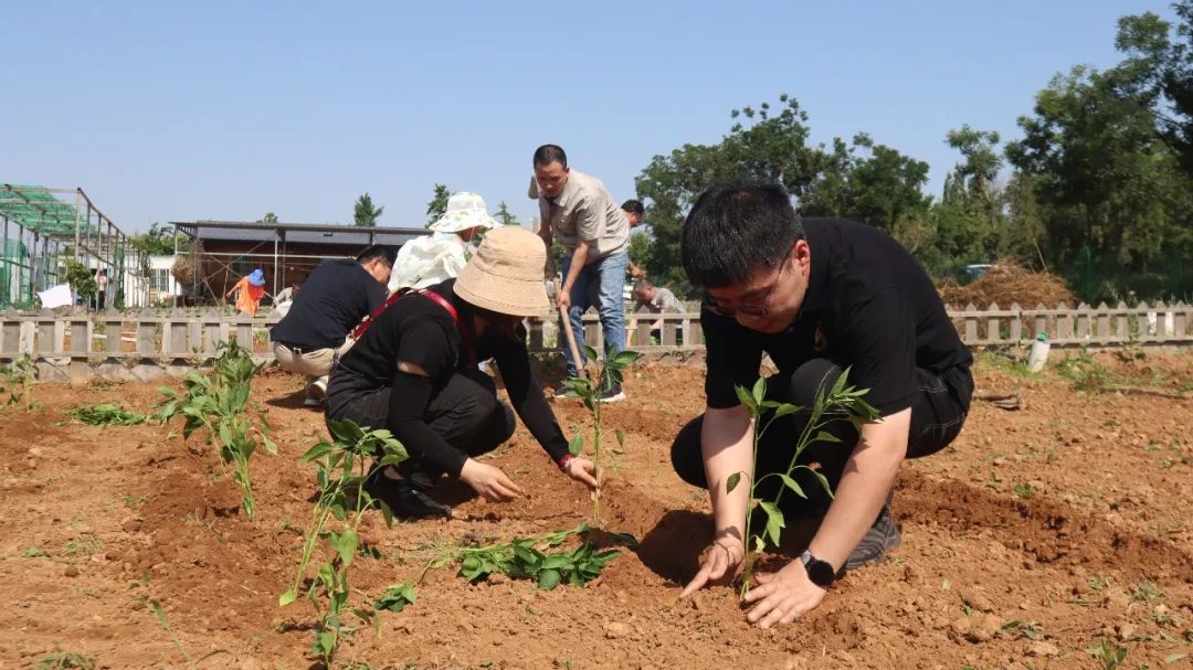 同志們分工協(xié)作,在有經(jīng)驗的老同志指導(dǎo)和示范下,依次開展松土、起壟、插秧、澆水、培土等工作。汗水滴灑在泥土里,歡聲笑語回蕩在空氣中。活動中,還有不少黨員帶著孩子來到現(xiàn)場,讓祖國的下一代在了解種菜過程的同時,體驗勞動果實的來之不易。